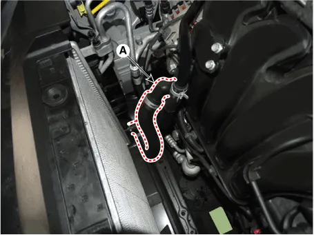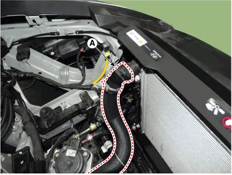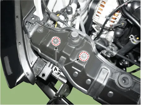 Remove the radiator upper mounting bolts (A) and then remove the radiator upper mounting brackets.