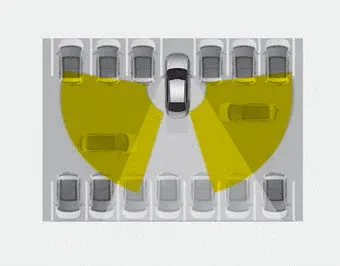 The Rear Cross-Traffic Collision Warning function monitors approaching cross traffic from the left and right side of the vehicle when your vehicle is in reverse.