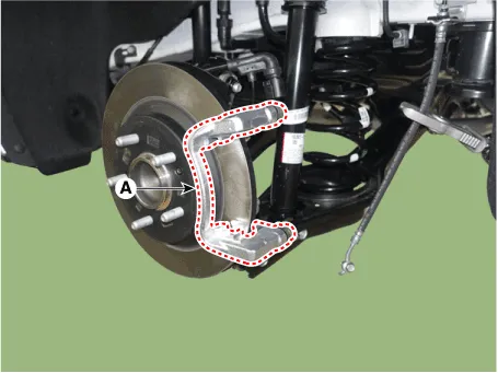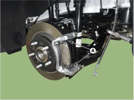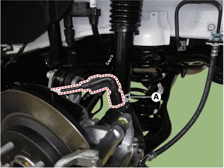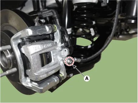Remove the hose after loosening the brake hose bolt (A) from the caliper.