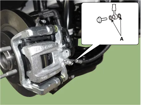 Loosen the brake hose bolt (A) from the caliper seperate the brake hose.