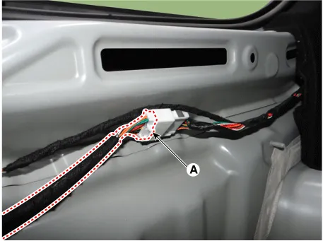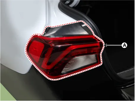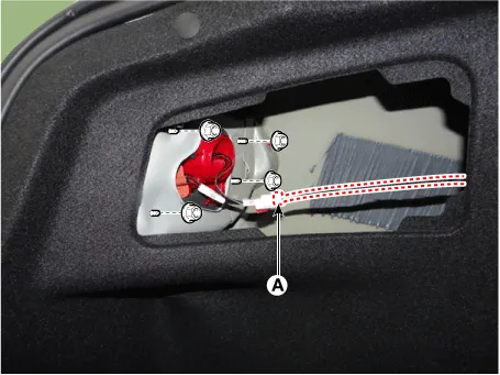 Loosen the rear combination lamp mounting nuts and separate the rear combination lamp connector (A).