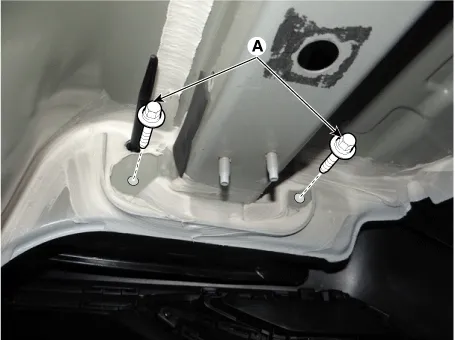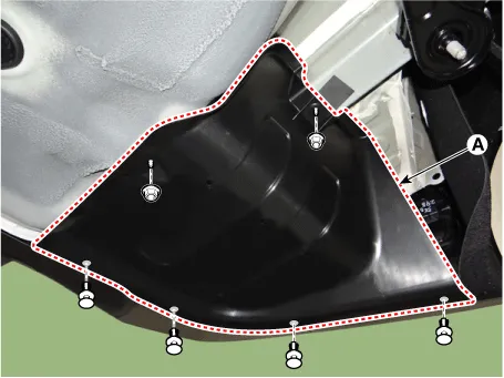 Loosen the mounting clips, nuts and remove the rear bumper side under cover (A).