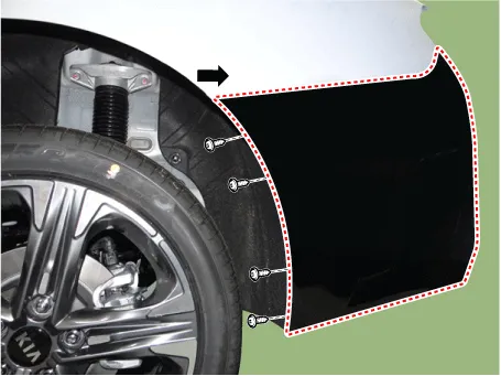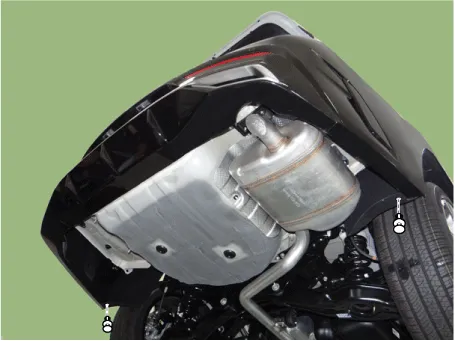 Loosen the pin-type retainers and screws on the side of rear bumper, detach the side part of rear bumper.