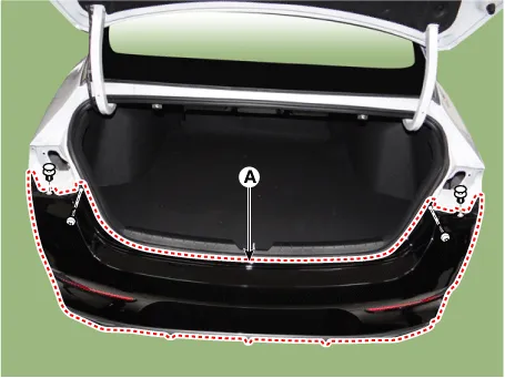 Loosen the mounting clips and screws, remove the rear bumper assembly (A).