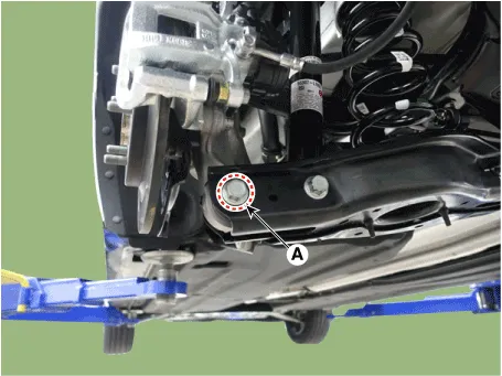 Loosen the bolt and nut (A) and then remove the rear lower arm from the rear axle.