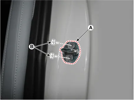 After loosening the mounting screw, adjust the striker (A) by moving it forward and backward or from side to side and then tighten the bolts (B).