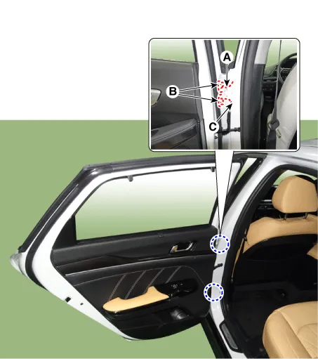 Remove the rear door trim. (Refer to Rear Door - "Rear Door Trim") |