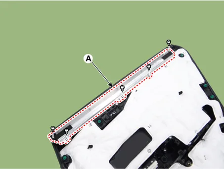 After loosening the mounting screws, remove the rear door curtain assembly (A).