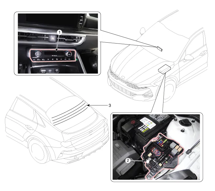 Components and components location Components Location 1. Auto logging actuator Description and operation Description The auto defogging sensor is installed on front window glass. The sensor judges and sends signal if moisture occurs to blow out wind for defogging.