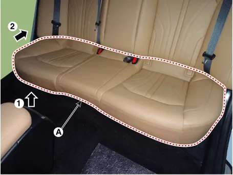 Remove the rear seat cushion assembly (A) by lifting and pulling the front.