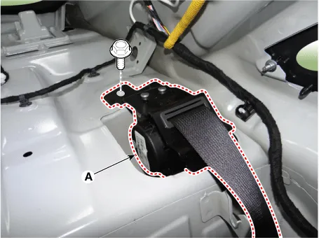 Loosen the mounting bolt and remove the rear seat belt retractor (A).