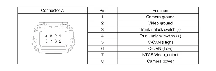 Measure the output voltage of rear camera power source. Connect to pin 1 and pin 8.