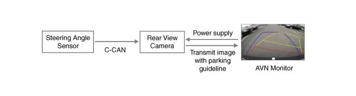 The system displays the rear of the vehicle to assist the driver of potential hazards, it receives vehicle rear side image signal from the rear view monitor and displays it on monitor. |