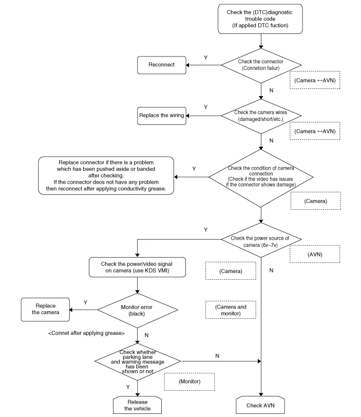 R-1. Inspect in following order when black screen has been occurred(camera - AVN direct connection specification)