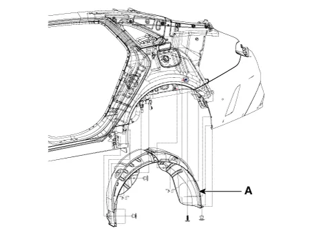 Loosen the mounting clips, screws and remove the rear wheel guard (A).