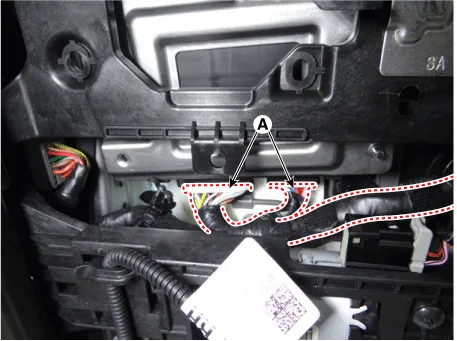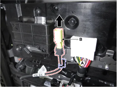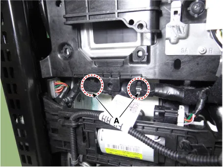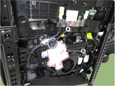 Remove the occupant detection sensor (B) by disconnecting the connector (A).