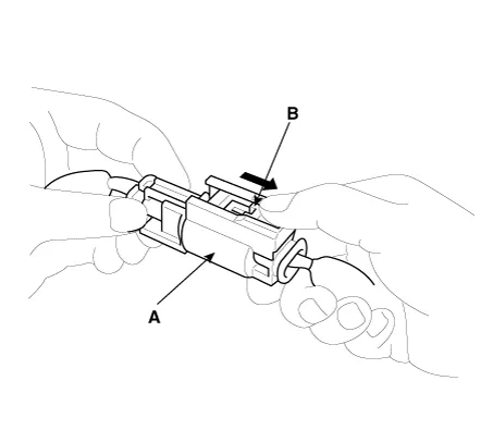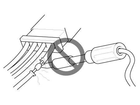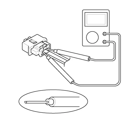 When using electrical test equipment, insert the probe of the tester into the wire side of the connector. Do not insert the probe of the tester into the terminal side of the connector, and do not tamper with the connector.