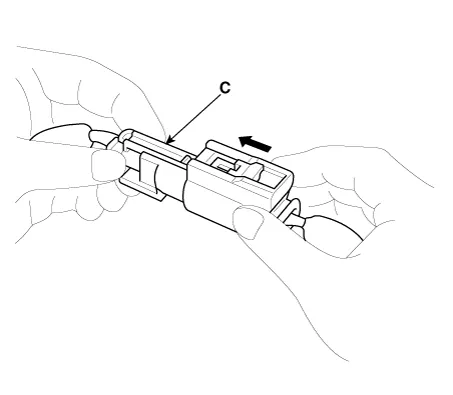 Hold both connector halves and press firmly until the projection(C) of the sleeve-side connector clicks to lock.