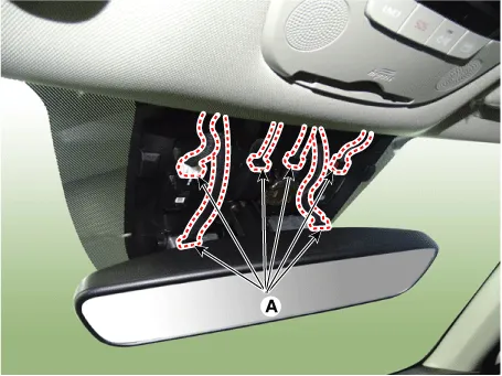 Using a screwdriver or remover, remove the inside rear view mirror cover (A).