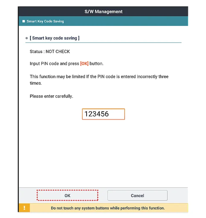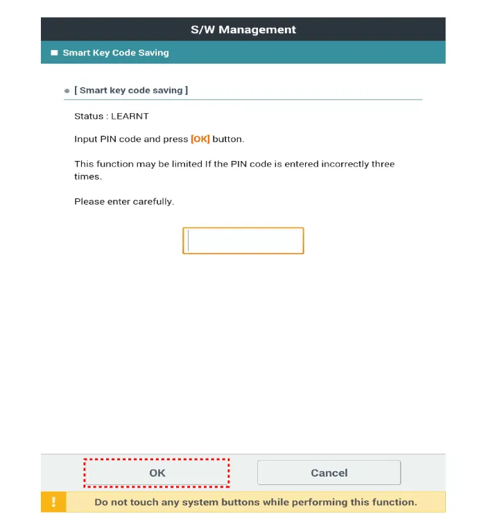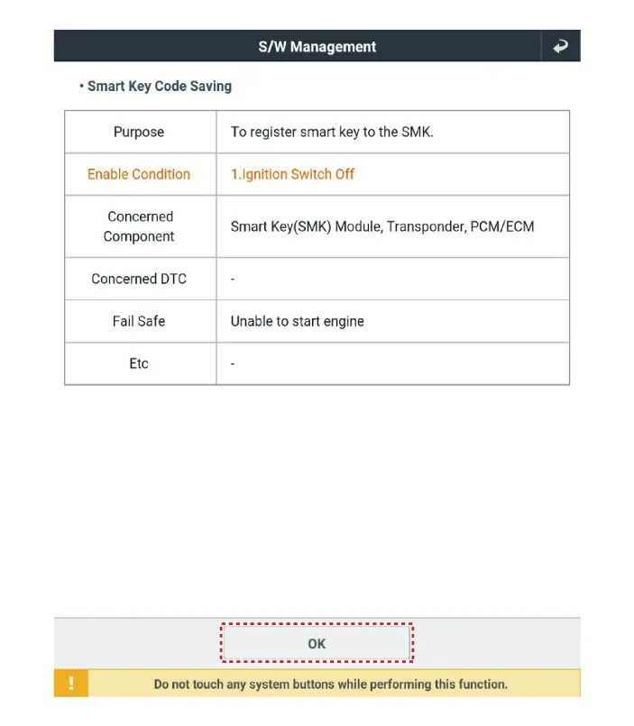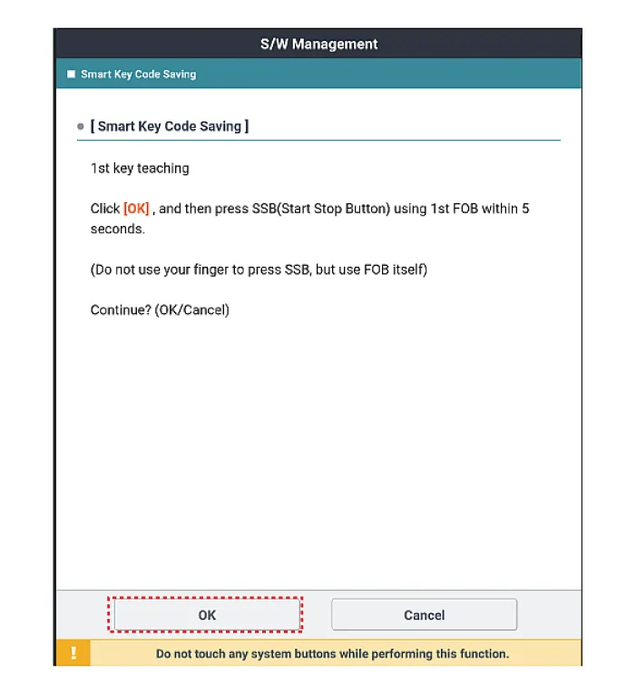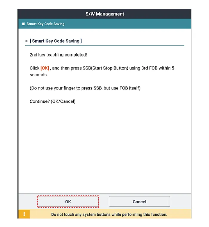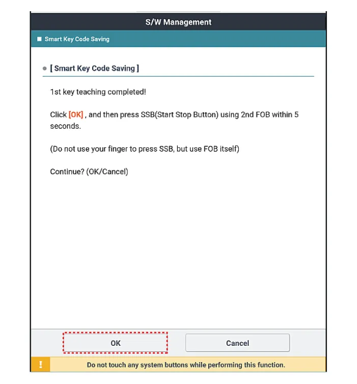 Press the SSB with smart key within 5 sec after pressing "OK".