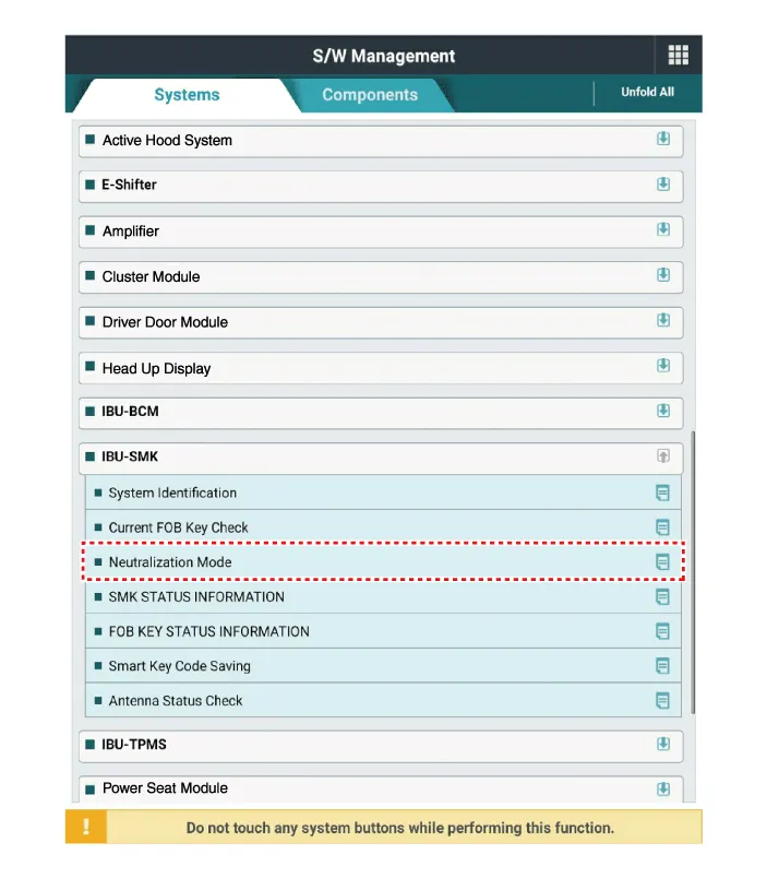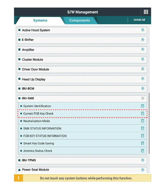 Select the "Car model" and the 'IBU-SMK' to be checked in order to check the vehicle with the tester. |