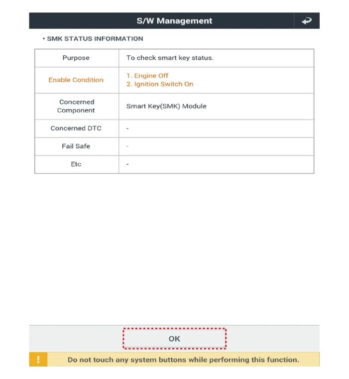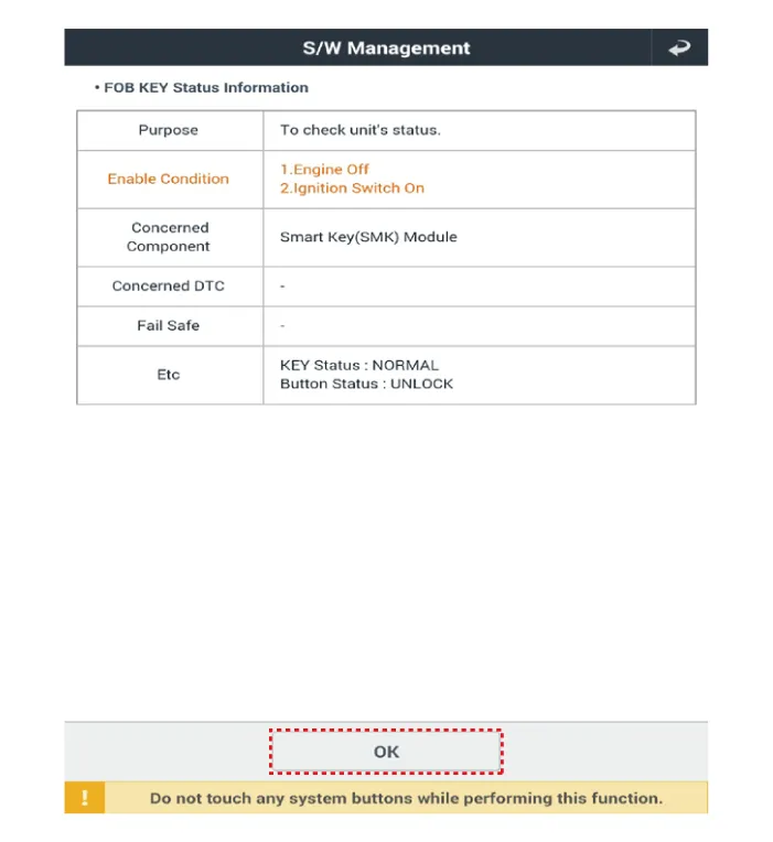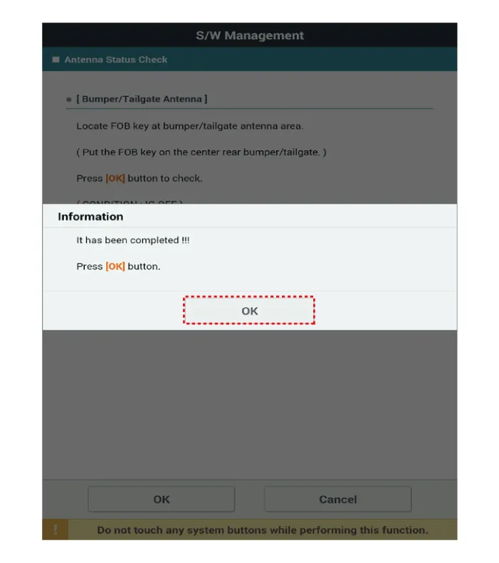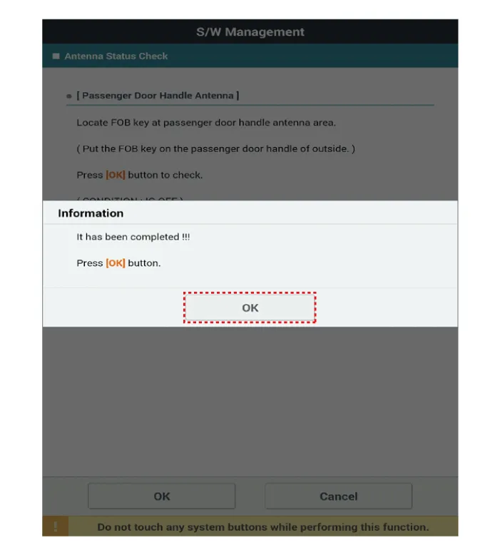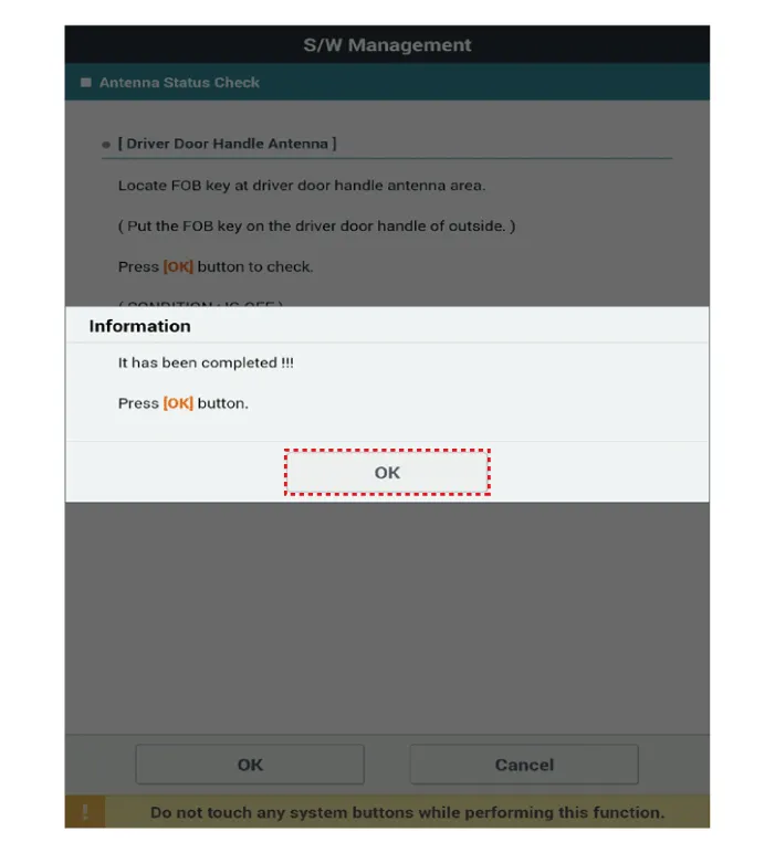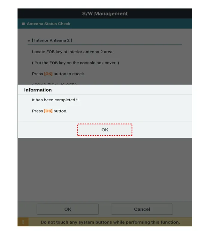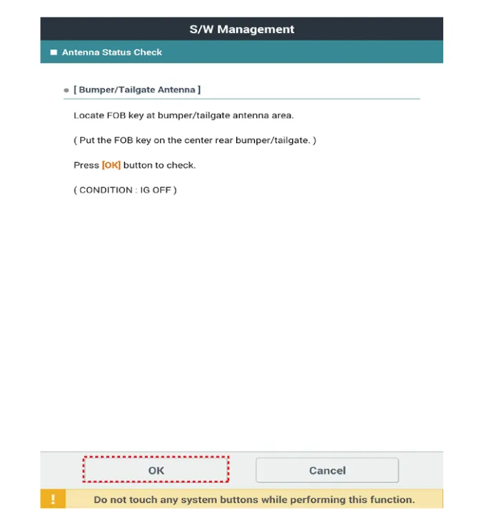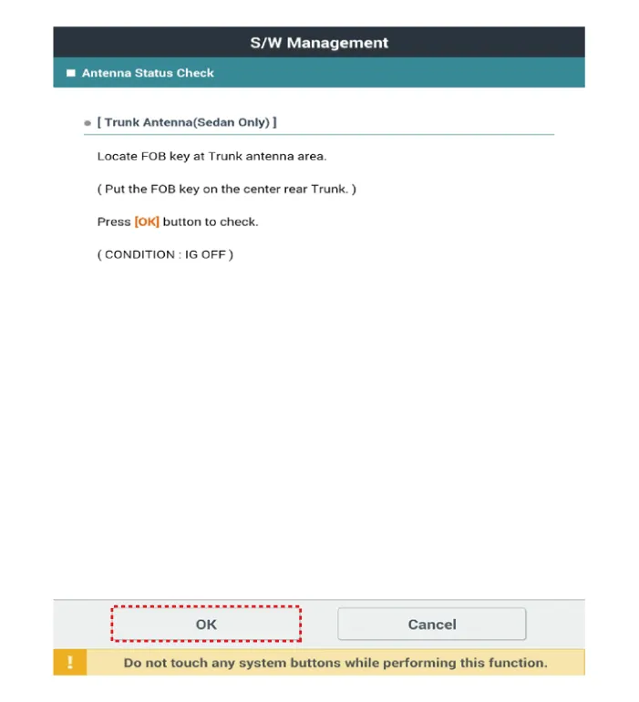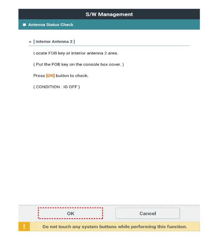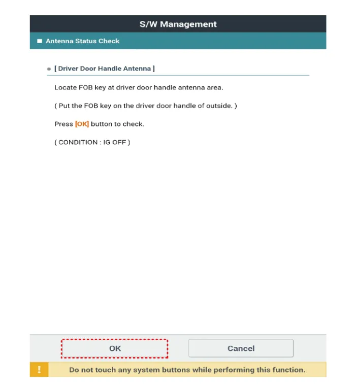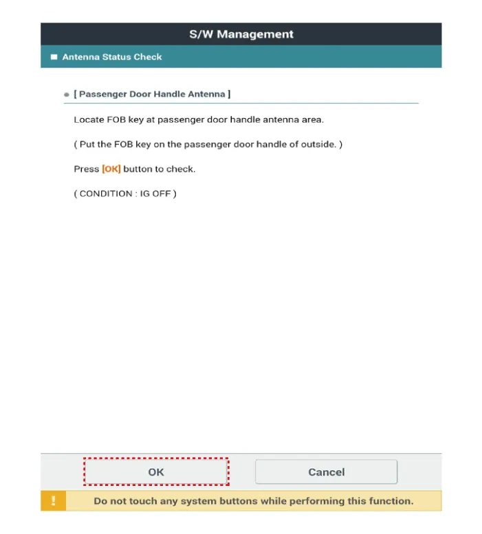 If the smart key runs normal , the related antenna, smart key(transmission, reception) and exterior receiver are normal. |