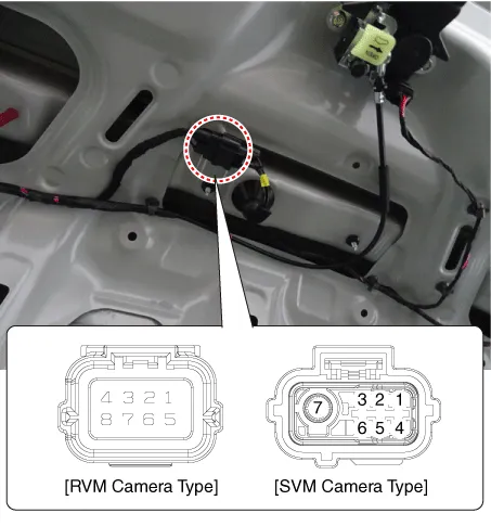 Remove the rear view camera (A) by loosening the mounting screws.