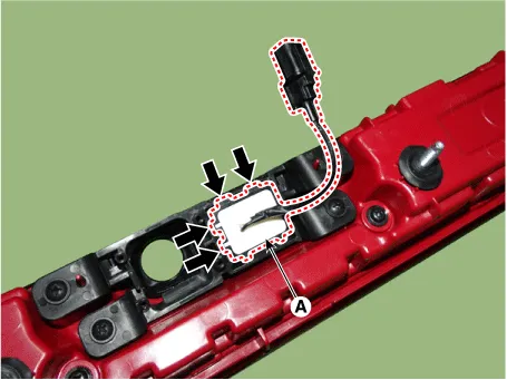 Repair procedures Removal 1. Disconnect the negative battery terminal. 2. Remove the lcense lamp (A) by pressing the hook. 3. Disconnect the lcense lamp connector (A).