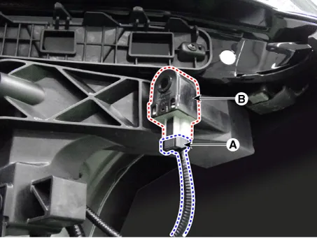 Remove the buzzer (B) after disconnecting the connector (A).