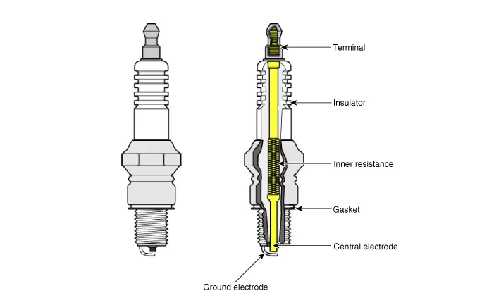 Check the spark plug for any damage on its thread and insulator. If there is damage, replace the spark plug. |