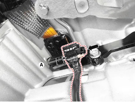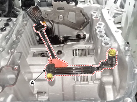 Remove the ATF drain plug (A), allow the fluid to drain out and then reinstall the drain plug.