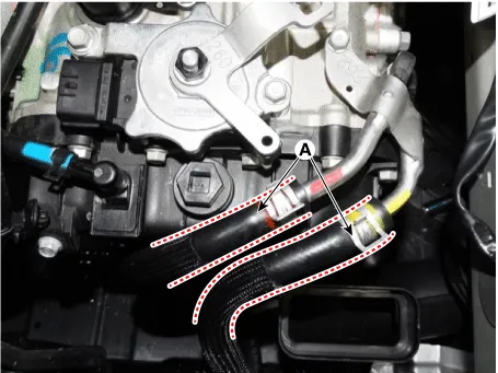 Disconnect the hose (A) after removing the automatic transaxle fluid cooler hose clamp.