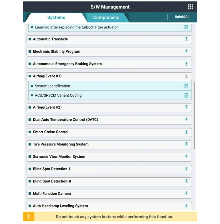 With ignition "ON" & Engine "OFF", select vehicle name and airbag system. |