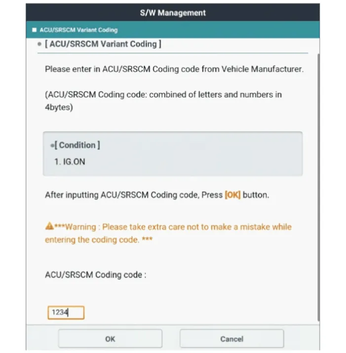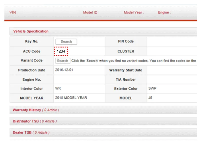 Confirm the ACU variant coding code from the KDS server after inputting the VIN to the KDS sever.