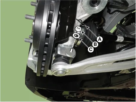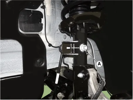 Disconnect the stabilizer link with the front strut assembly after loosening the nut (A).