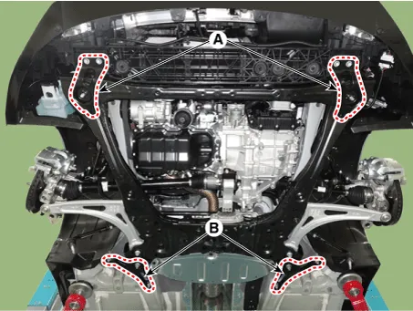 Remove the engine room under cover. G 2.0 NU MPI (Refer to Engine Mechanical System - "Engine Room Under Cover") G 2.5 GDI THETA II (Refer to Engine Mechanical System - "Engine Room Under Cover") |