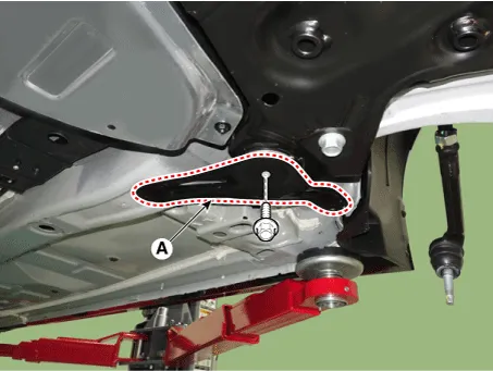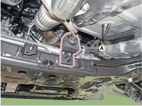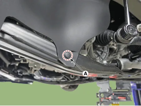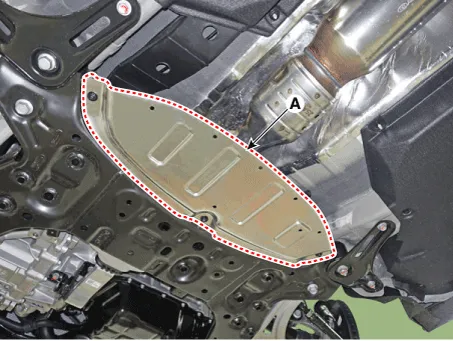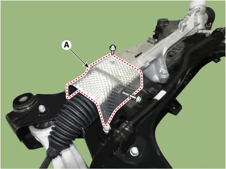 Remove the steering gear box heat protector (A) after loosening the mounting bolts