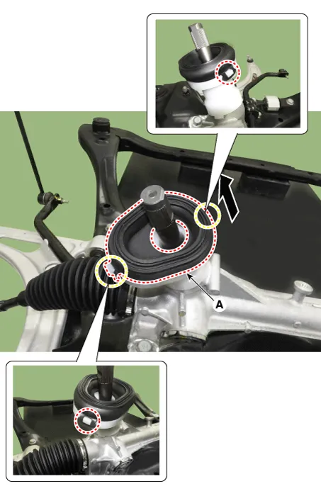 Remove the tie rod end (A) by loosening it in the counterclockwise.