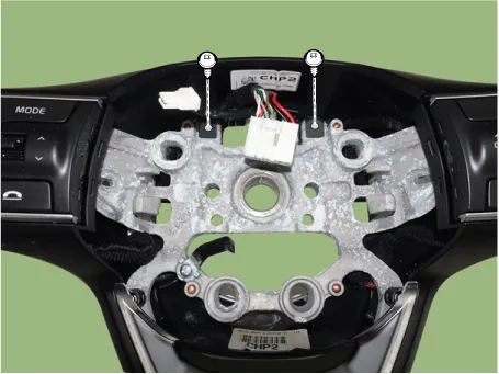 Disconnect the heated steering wheel connector (A) and then remove the steering wheel lower cover.