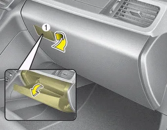 To open the glove box, pull the lever (1) and the glove box will automatically open. Close the glove box after use.