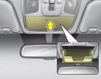 To open the sunglass holder, press the cover and the holder will slowly open. Place your sunglasses with the lenses facing out.