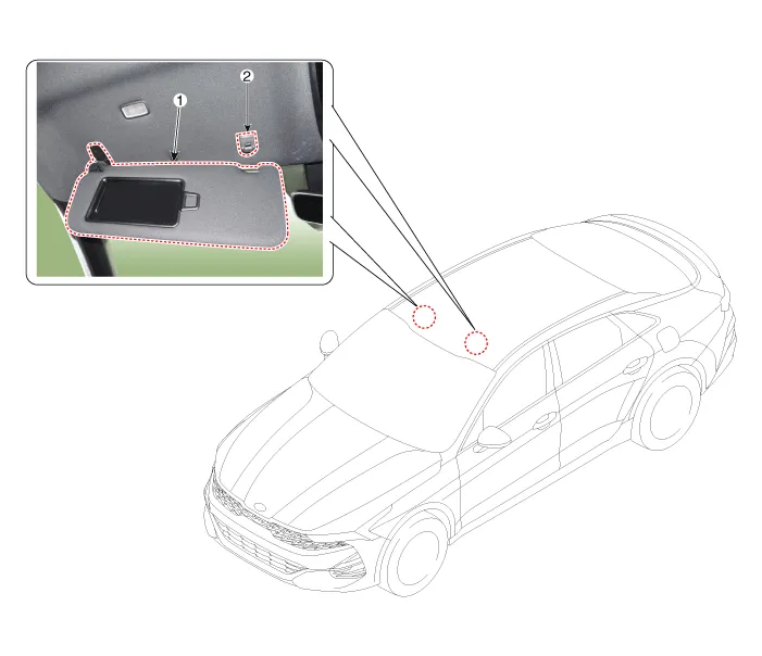 Components and components location Components [General Type] 1. Sunvisor [LH] 2. Sunvisor [RH] 3. Roof trim [Panorama Sunroof Type] 1.