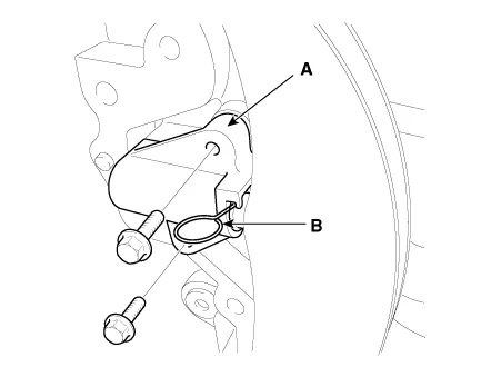 Install the timing chain auto tensioner (A) and remove the stopper pin (B).