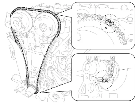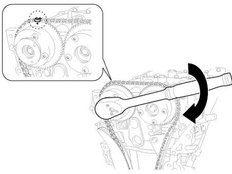 The TDC marks of the intake and exhaust CVVT sprockets are slightly turned from the TDC position as shown when the timing chain is removed.