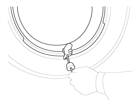 Place the tire on the rim so the bottom bead touches the edge of the rim after the valve (6 o’clock). Rotate the rim clockwise, and push down on the tire at the 3 o’clock position to fit bottom bead.