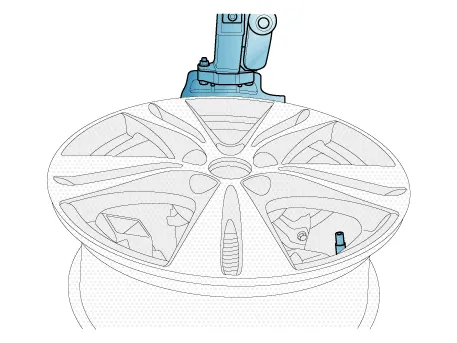 To fit the bottom bead, position the valve at the 5 o’clock position relative to the head on the tire changing machine.