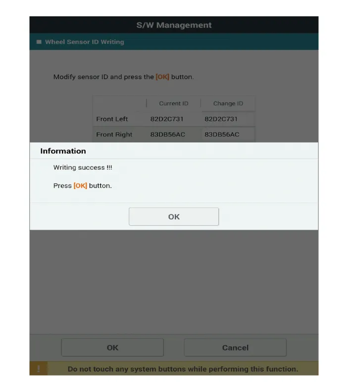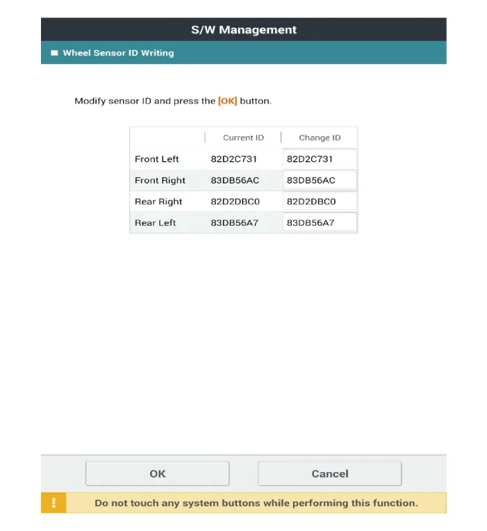 Select the "IBU-TPMS" and "Wheel Sensor ID Writing" on KDS vehicle selection screen, then select OK.