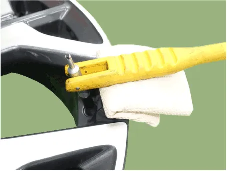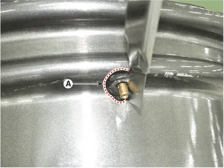Apply lubricant to the surface of the new valve, and then mount it through the valve hole of the wheel.