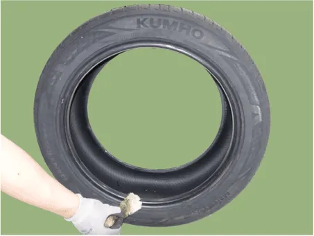 Apply soapy water or lubricant to the upper/lower bead section of the tire.