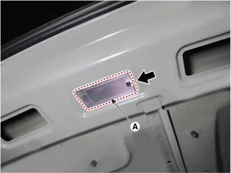 Remove the trunk room lamp (A) by pressing the hook.